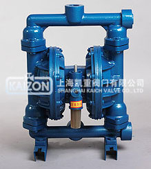 在隔膜泵的兩個對稱工作腔中,各裝有一塊有彈性的隔膜,聯(lián)桿將兩塊隔膜結(jié)成一體,壓縮空氣從泵的進氣接頭進入配氣閥后,推動兩個工作腔內(nèi)的隔膜,驅(qū)使聯(lián)桿聯(lián)接的兩塊隔膜同步運動。與此同時,另一工作腔中的氣體則從隔膜的背后排出泵外。一旦到達行程終點。配氣機構(gòu)則自動地將壓縮空氣引入另一個工作腔,推動隔膜朝相反方向運動,這樣就形成了兩個隔膜的同步往復運動。每個工作腔中設(shè)置有兩個單向球閥,隔膜的往復運動,造成工作腔內(nèi)容積的改變,迫使兩個單向球閥交替地開啟和關(guān)閉,從而將液體連續(xù)地吸入和排出。